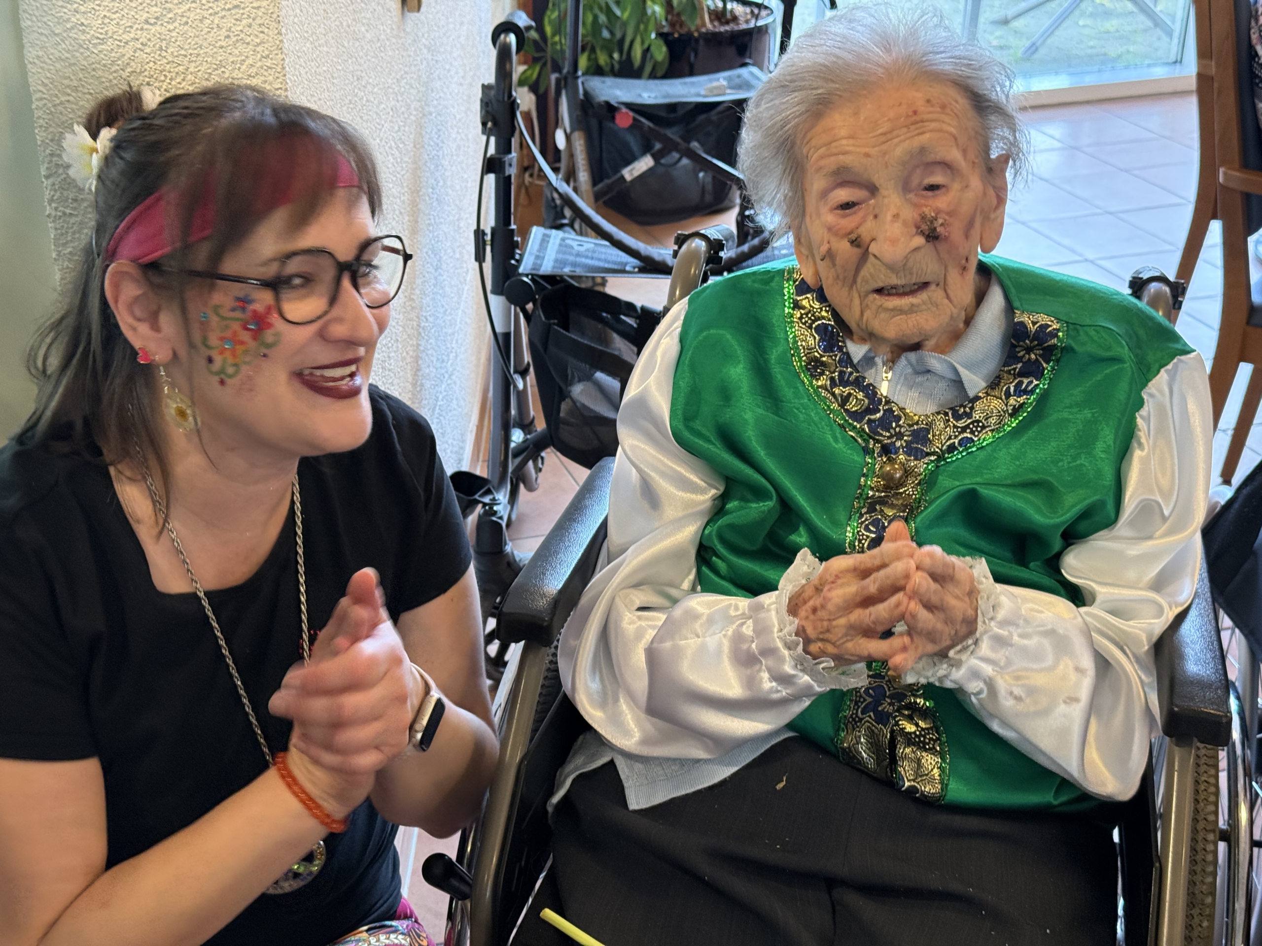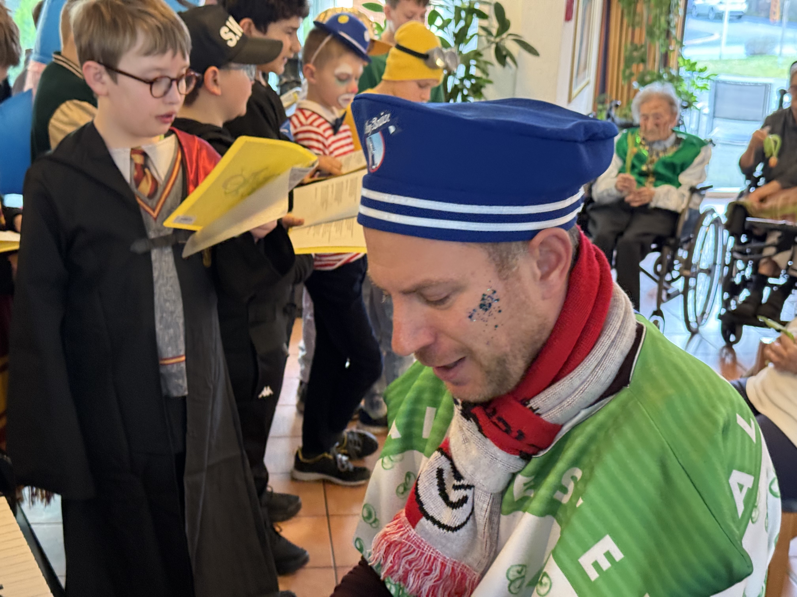 Unter den alten Klassikern fanden sich beliebte Karnevalshits wie „Mir schenke der Ahl e paar Blömcher“ und „Schnaps, das war sein letztes Wort“ von Willy Millowitsch, die die Seniorinnen und Senioren mit sichtbarer Freude begleiteten. Doch auch neue Hits wie „Atemlos“ und der mitreißende Stimmungsmacher „So ein schöner Tag“ sorgten für ausgelassene Stimmung. Die fröhlichen Klänge zauberten allen Beteiligten ein Lächeln ins Gesicht – sogar die älteste Bewohnerin des Seniorenstifts, stolze 104 Jahre alt, klatschte bei allen Liedern begeistert mit.