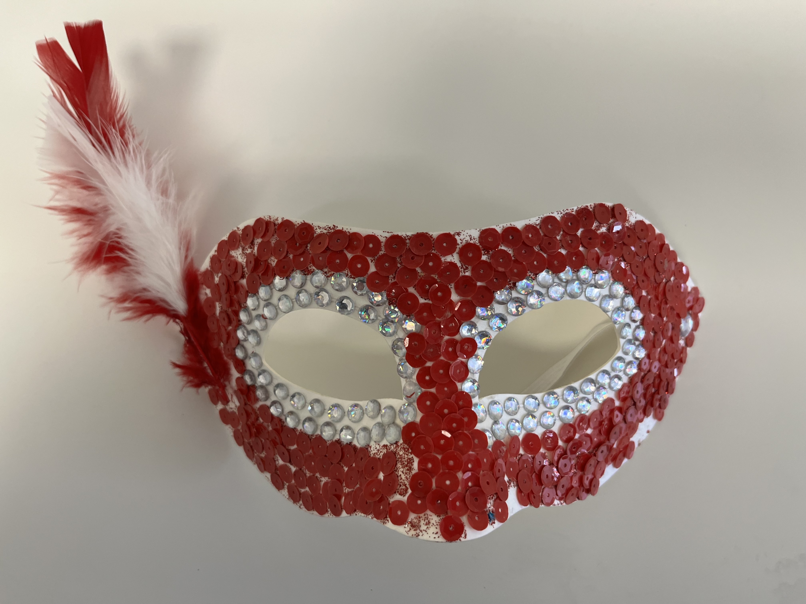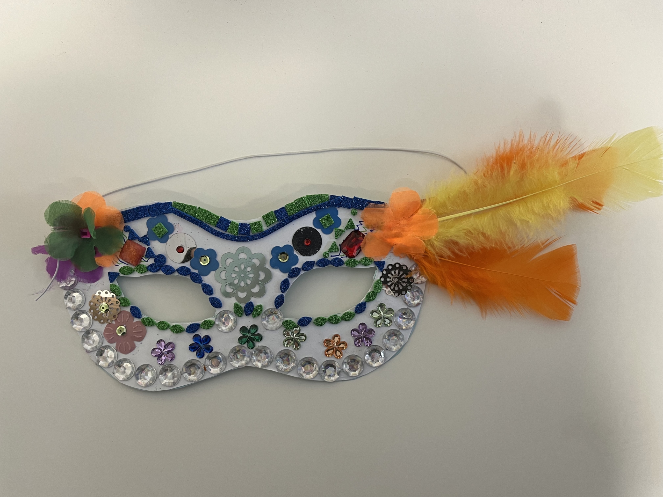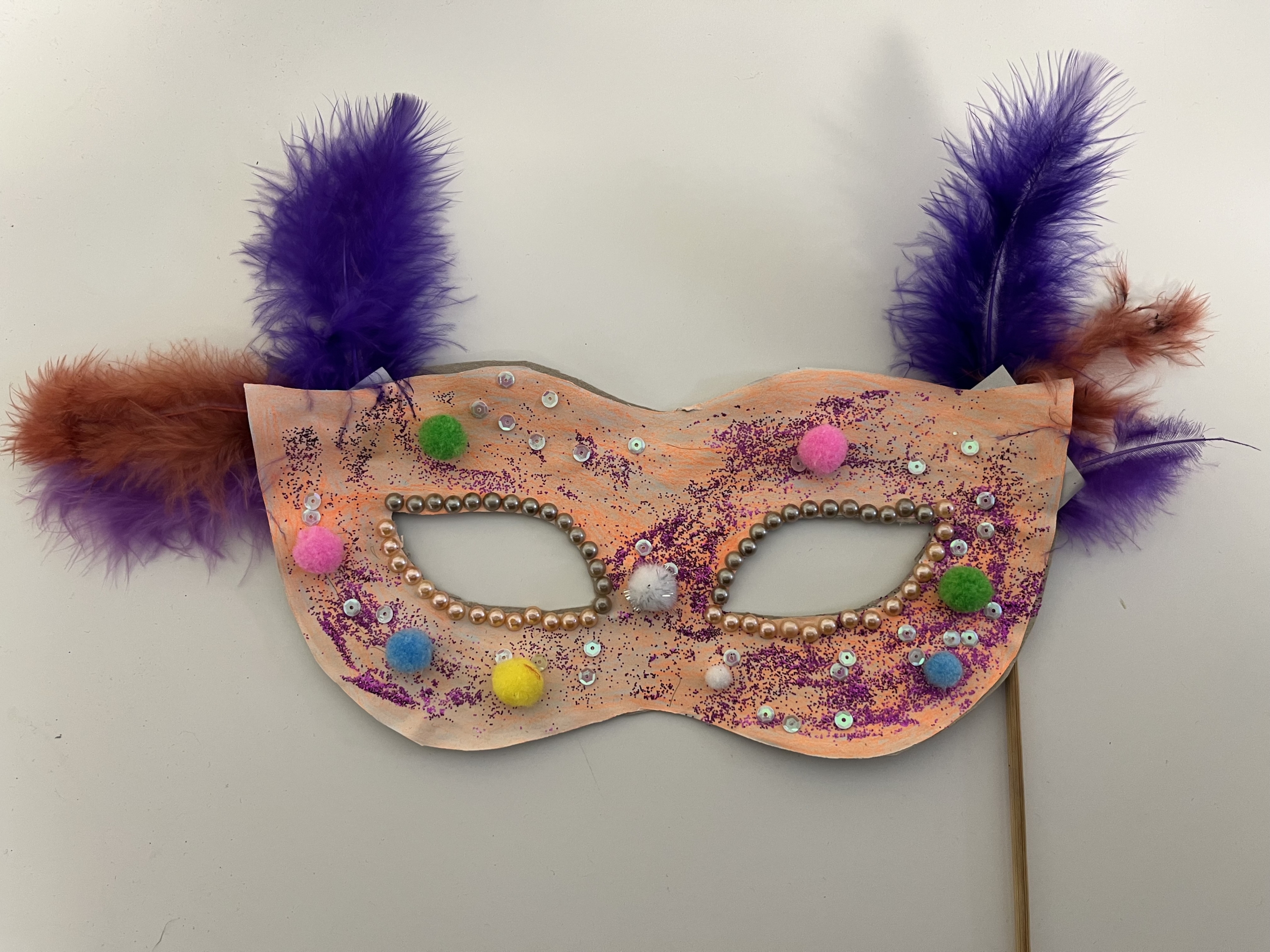 Die Jungen und Mädchen nahmen sich dieser Thematik an und gestalteten eigene Venezianische Masken. Der Phantasie waren keine Grenzen gesetzt und an Materialien durfte alles verwendet werden, was zuhause vorhanden war. Die Schüler erhielten vorab eine Schablone, die sie zuschnitten und dann mit verschiedensten Materialien gestalteten und beklebten. An den Enden der Maske wurden Schleifen oder Gummis angebracht, um diese tragen zu können. Ob mit Federn, Perlen oder nur mit Farbe, alle Arten von Materialien kamen hier zum Einsatz.