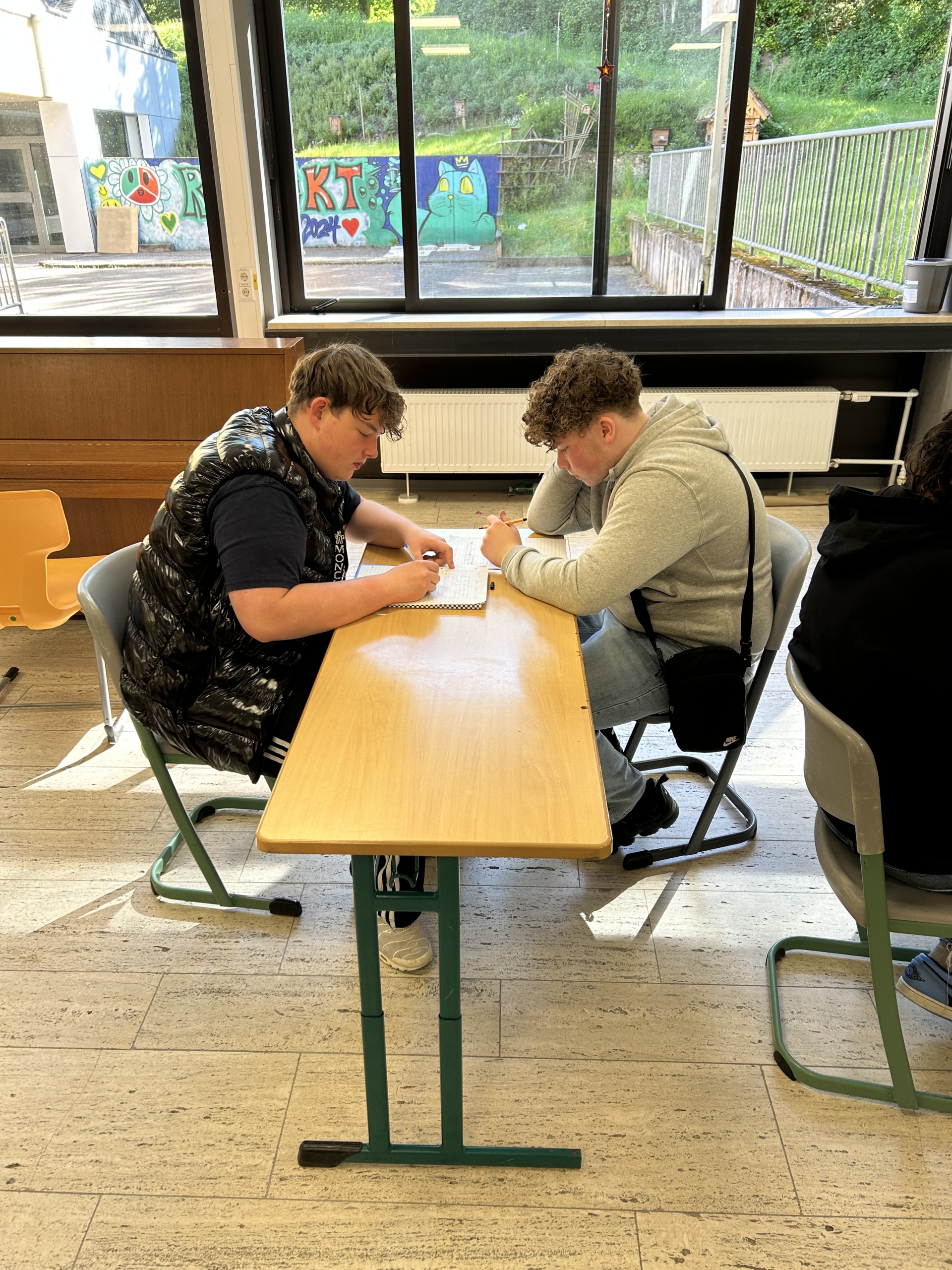 Zu Beginn arbeiteten die Schüler*innen in Kleingruppen und diskutierten unter der Überschrift „Respekt und Toleranz“ Themen, die ihnen wichtig sind, wie Freundschaft, Träume und gesellschaftliche Herausforderungen. Anschließend verfasste jede*r seine eigenen Textzeilen. Der Rap-Künstler stand ihnen dabei beratend zur Seite und half, die Texte zu verfeinern und rhythmisch zu gestalten. Die Atmosphäre war kreativ und dynamisch, und es wurde viel gelacht und experimentiert. Am Ende dieser Phase wurden alle Zeilen zu einem Song zusammengefasst.