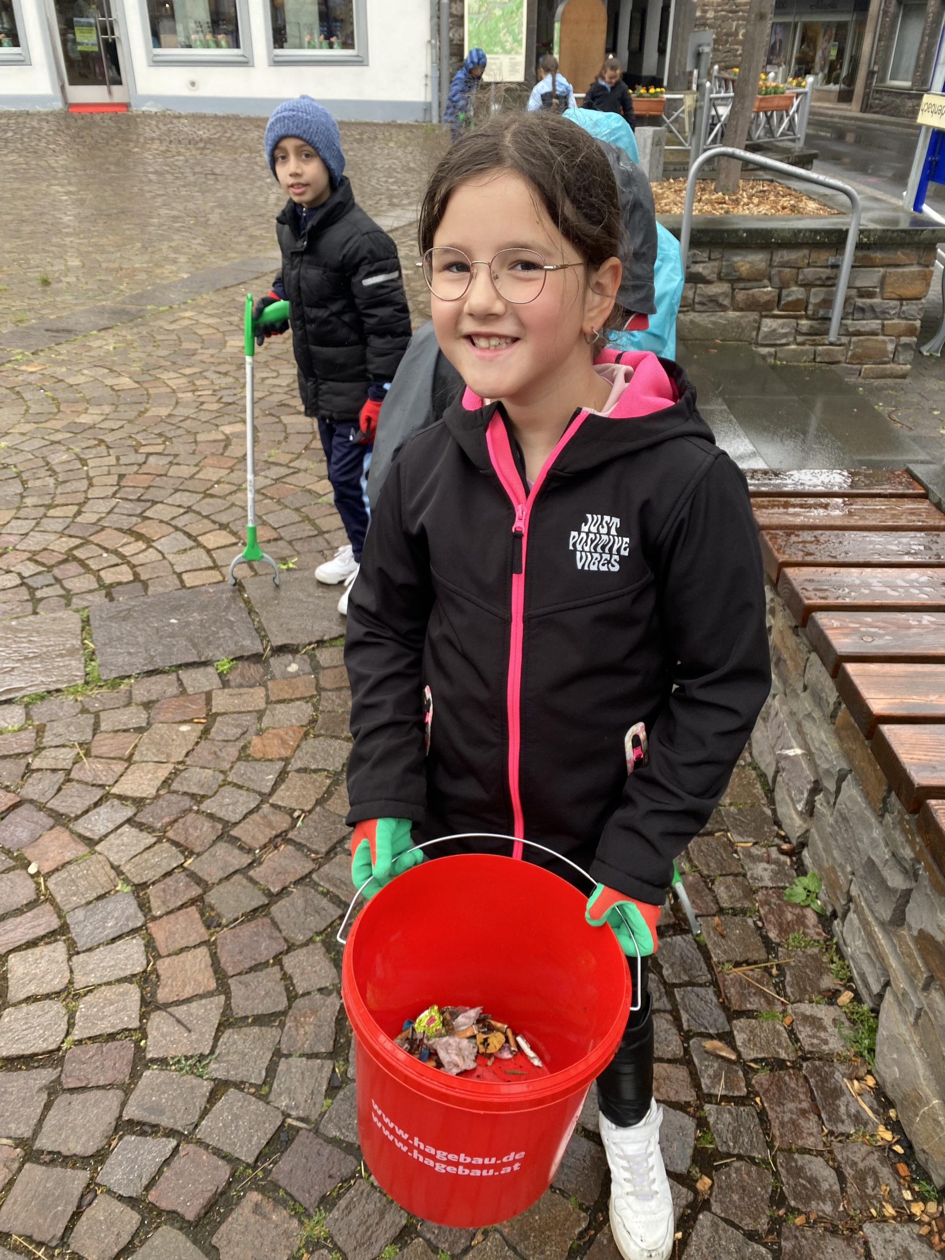 Insgesamt sammelte die Klasse acht volle Eimer Müll – ein beeindruckendes Ergebnis!