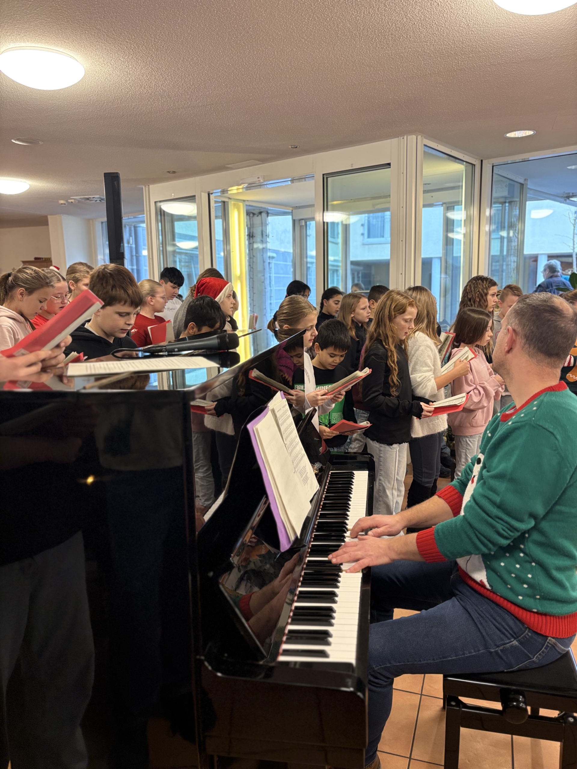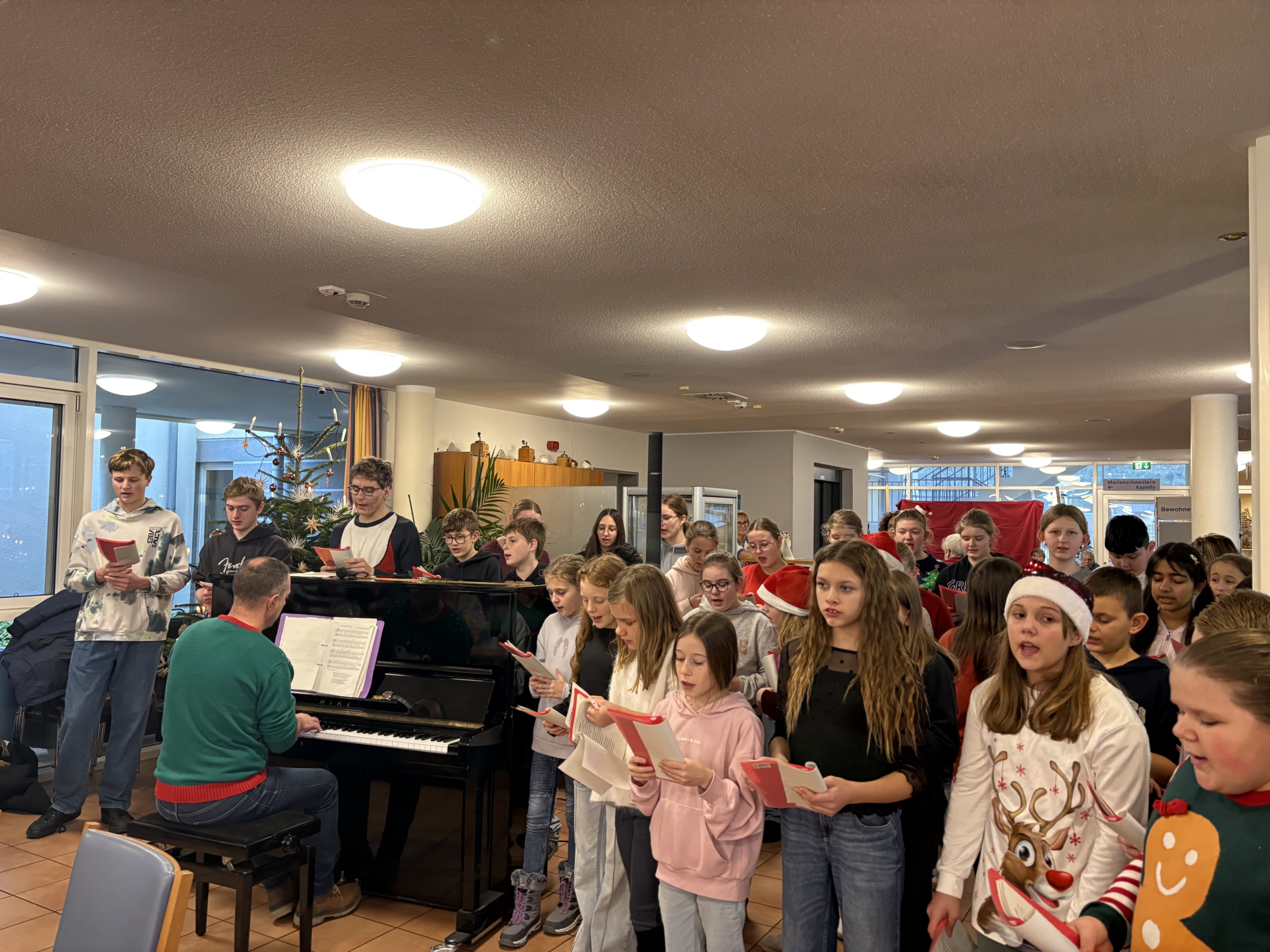 Unter der Leitung von Herrn Mühl präsentierten die Kinder ein stimmungsvolles Programm aus bekannten Weihnachtsliedern. Mit großem Engagement und viel Begeisterung sangen sie Lieder, die Erinnerungen weckten und für eine festliche Atmosphäre sorgten. Die Bewohnerinnen und Bewohner lauschten aufmerksam, sangen teilweise mit und zeigten sich sichtlich gerührt.