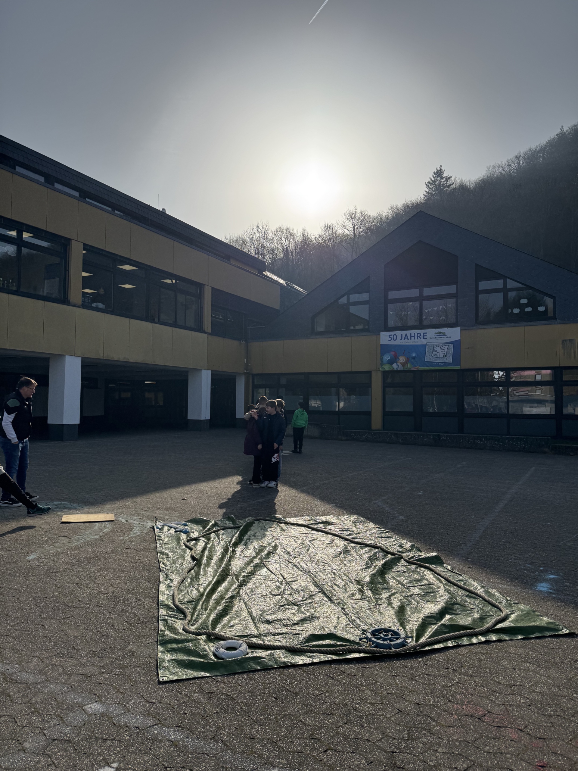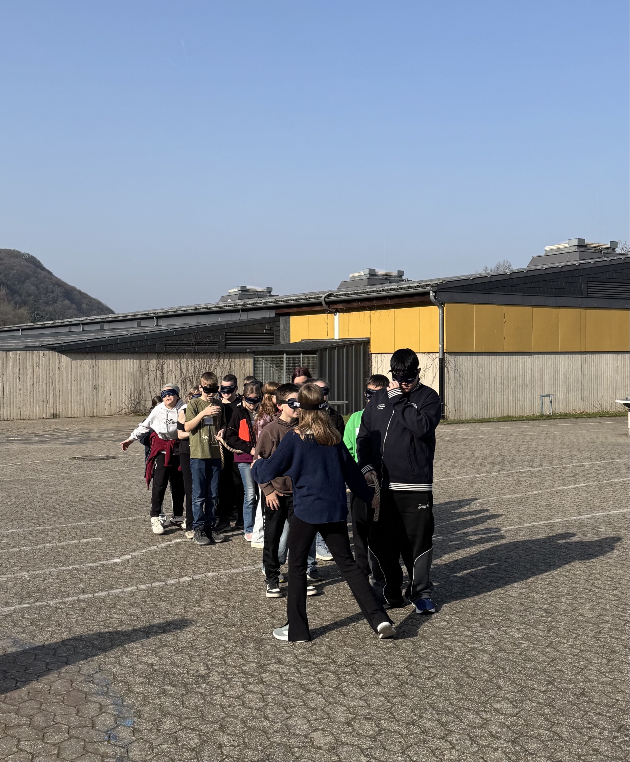 Ein weiteres Highlight war das erlebnispädagogische Angebot des Pastoralreferenten Herrn Hoffmann. Bei einem spannenden „Segelturn“ mussten die Schülerinnen und Schüler in verschiedenen Teamaufgaben zusammenarbeiten, Herausforderungen meistern und gemeinsam Lösungen finden. Dabei waren Kommunikation, Vertrauen und Kreativität gefragt – und natürlich machte das Ganze auch jede Menge Spaß.